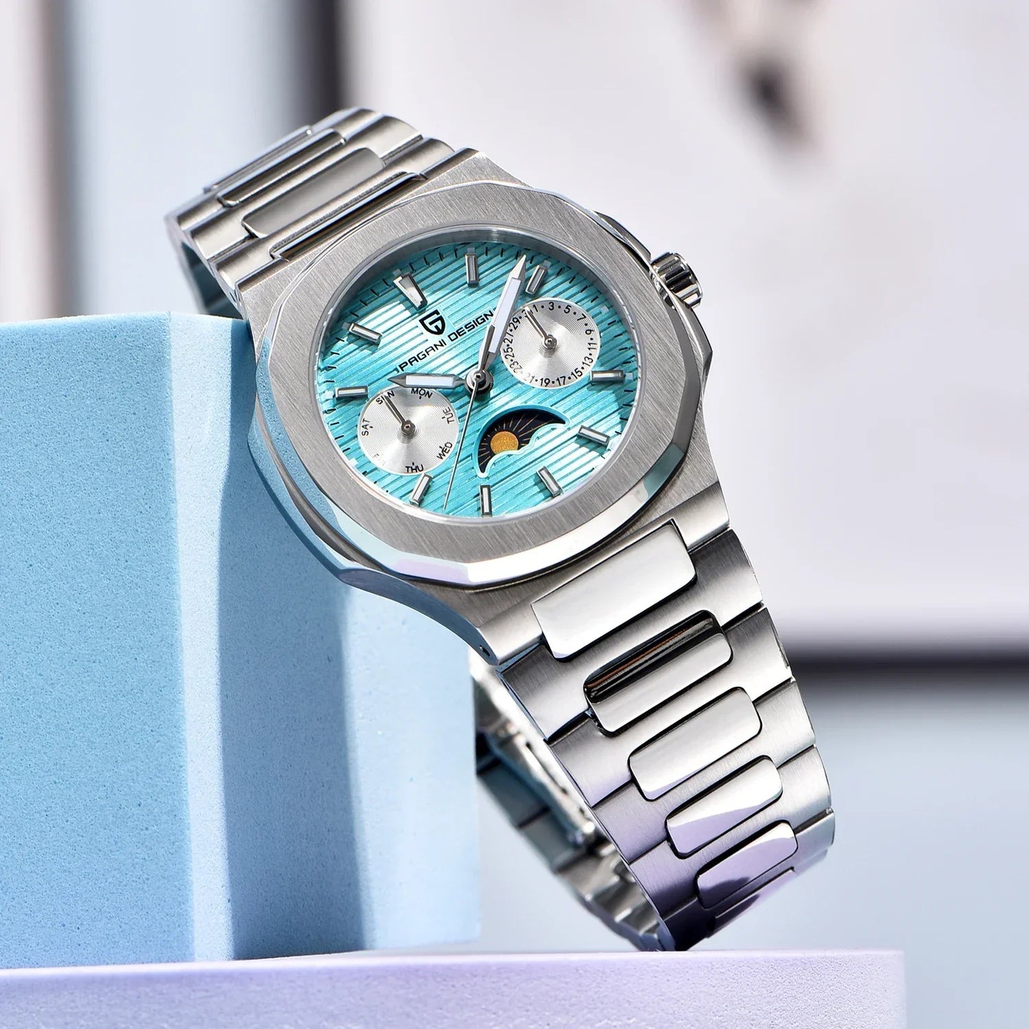 Feature: Shock Resistant,Luminous,Auto Date,Complete Calendar,DIVER,Moon Phase,Water-Resistance,swim,Week Display,Luminous Hands